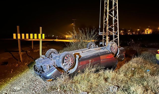 Takla atıp ters dönen araçta 3 kişi yaralandı