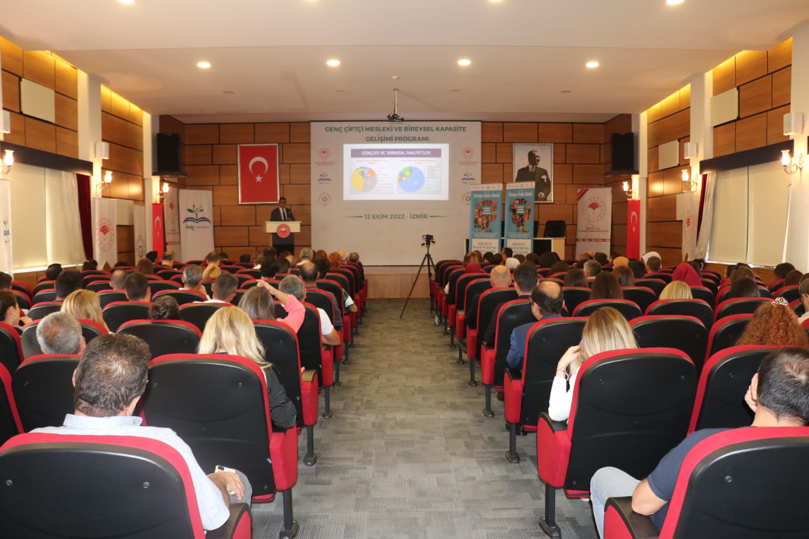 “Genç Çiftçilerin Sürdürülebilir Tarım ve Kırsal Yaşam Algısı ve Beklentisi” konulu araştırma sonuçlarının açıklandığı Çalıştay, İzmir İl Tarım ve Orman Müdürü Mustafa Özen, FAO Türkiye Temsilci Yardımcısı Ayşegül Selışık, Pınar Süt Genel Müdürü Gürkan Hekimoğlu, Ankara Üniversitesi Kalkınma Çalışmaları Uygulama ve Araştırma Merkezi Müdürü Prof. Dr. Bülent Gülçubuk tarafından yapılan açılış konuşmalarıyla başladı.Sözlerine Geleceğin Çiftçilerini, genç üreticileri selamlayarak başlayan İzmir İl Tarım ve Orman Müdürü Mustafa Özen “Böyle bir projenin içerisinde İzmir olarak yer almak mutluluk verici. 148 bin çiftçi ailesi, yaklaşık 51 bin ÇKS’ye kayıtlı çiftçisi olan hakikaten yeniliklerin, ilklerin, tarımın profesyonelleşerek küçük aile işletmeciliğinden daha profesyonel işletmeciliğe dönmesi anlamında çok şanslı bir şehirde yaşıyoruz” dedi. İzmir’de tarımın tüm paydaşlarının tarıma destek verdiği ve bu noktada çok şanslı bir şehir olduğunu vurgulayan İl Müdürü Özen “Böyle şanslı bir şehirde bu şanslılık bize aynı zamanda çok büyük bir de sorumluluk yüklemektedir. Daha fazla çalışma zorunluluğu ve daha fazla sahada olma mecburiyeti getirmektedir. Biz de bütün bu anlayış doğrultusunda hedeflerimizi yakalama noktasında 30 ilçemizde bütün yönetici arkadaşlarımızla, bütün teknik personelimizle mesai saatlerini unuttuk. Haftanın neredeyse 7 günü akşam demeden gündüz demeden üreticilerimizin yanında olmak gibi bir gayret ve performans sergiliyoruz” dedi.