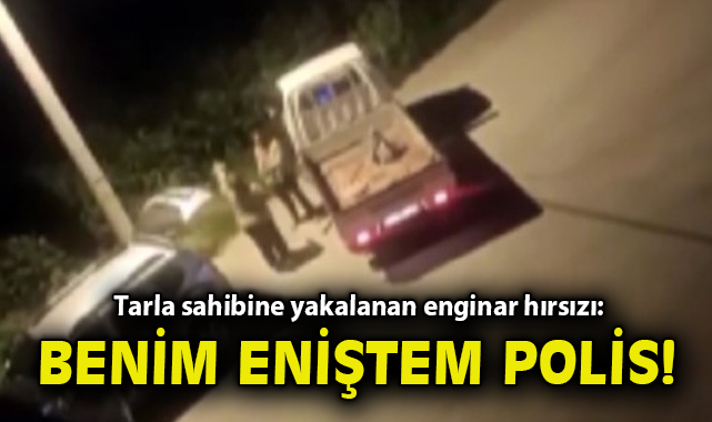 İzmir'in Torbalı ilçesinde bir tarladan izinsiz enginar toplayan kişi, tarla sahibi tarafından yakalandı. Enginarları izinsiz toplayan kadın ise "Benim eniştem polis" diyerek kendisini savundu.