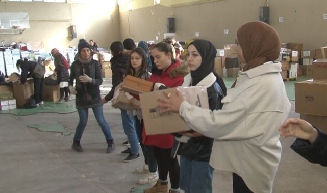 Yardım kolisi hazırlamada yardımcı olan lise öğrencisi Elif Akci ise, "Buraya sabah saatlerinde gelip akşam saatlerine kadar yardımcı olmaya çalışıyoruz. Ara tatil de uzatıldığı için her gün buraya gelmeye çalışacağım. Acılarımızı dindirmeye çalışıyoruz. Elimizden gelen ne yazık ki bu" dedi.