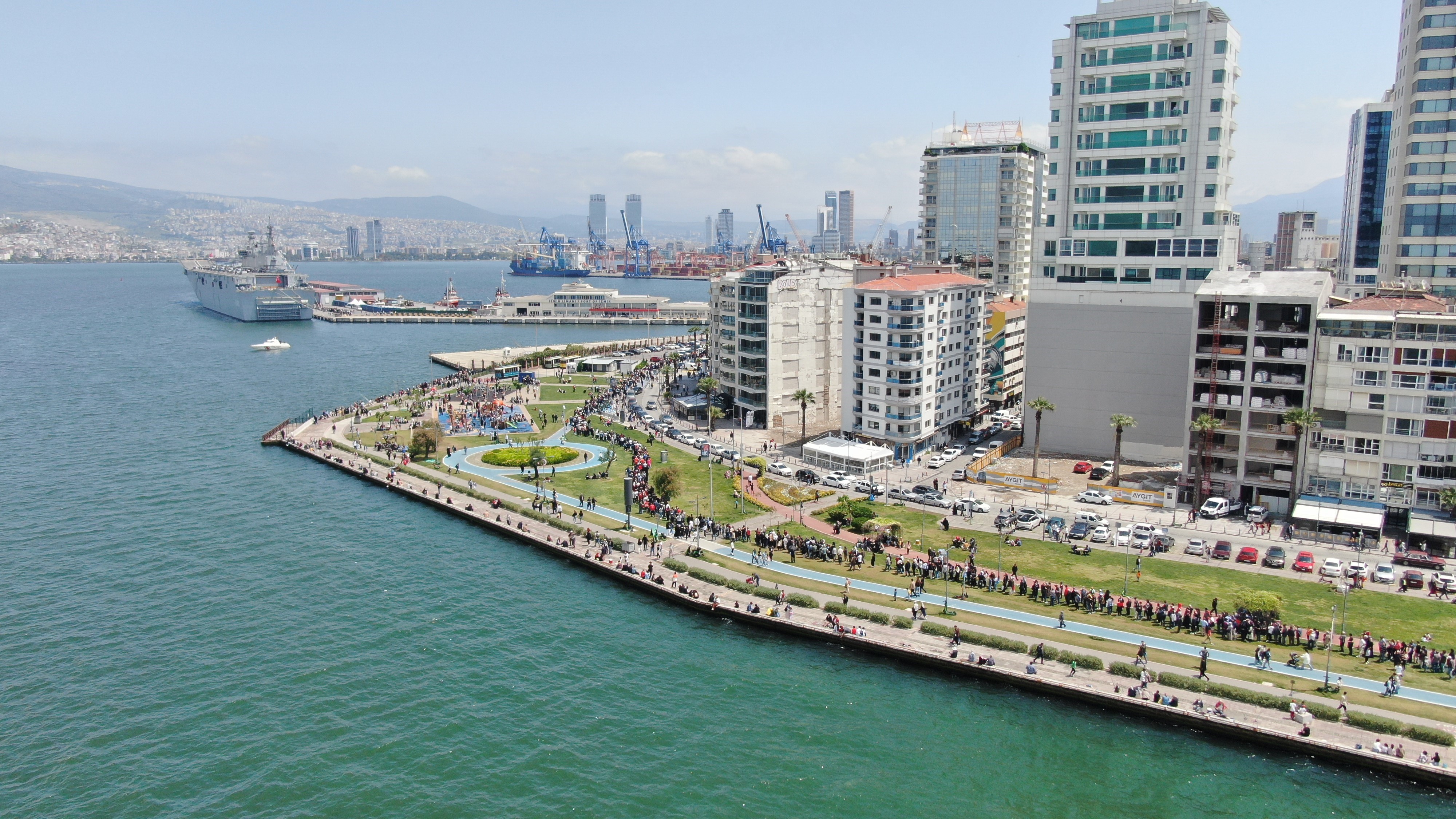 İstanbul’un ardından İzmir’e gelen TCG Anadolu gemisi, İzmir Limanı’nda vatandaşların ziyaretine açılmıştı. 3 Mayıs’tan itibaren İzmirlilerin yoğun ilgisini gören TCG Anadolu'yu görmek isteyenler hafta sonu da yoğunluk oluşturdu. İzmir’in dört bir yanından Alsancak’ta bulunan TCG Anadolu’yu görmeye gelenler, uzun kuyruklar oluşturdu. Alsancak’a çıkan Ankara Caddesi, Altınyol gibi ana arterlerde de trafik durma noktasına geldi, kilometrelerce araç kuyruğu oluştu. Uzun araç trafiği dron ile havadan görüntülenirken, TCG Anadolu’yu ziyarete gitmek için yola çıkan Gençlik ve Spor Bakanı ve İzmir Milletvekili Adayı Dr. Mehmet Kasapoğlu da trafikte takılı kaldı. Bakan Kasaoğlu, çareyi aracından inerek yürümekte buldu. Araçlarından çıkan bazı vatandaşlar da, Bakan Kasapoğlu ile birlikte yürüyerek TCG Anadolu’nun bulunduğu İzmir Limanı’na ulaştı.