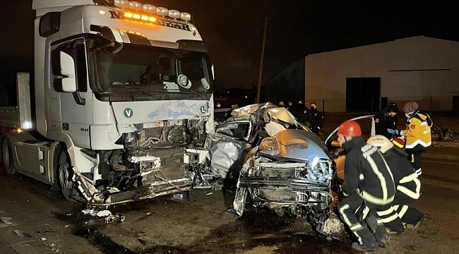 sonucu karşı yönden gelen Cumhur Ç. idaresindeki tır ile kafa kafaya çarpıştı.