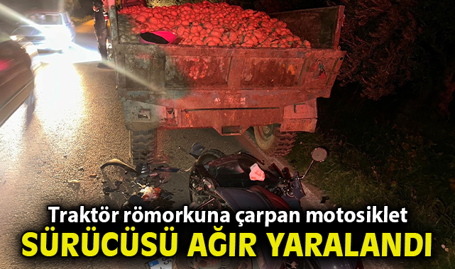 Traktör römorkuna çarpan motosiklet sürücüsü ağır yaralandı