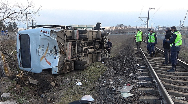 beldesinde hemzemin geçitte işçi servisi ile tren çarpıştı. Çarpışma sonucu
