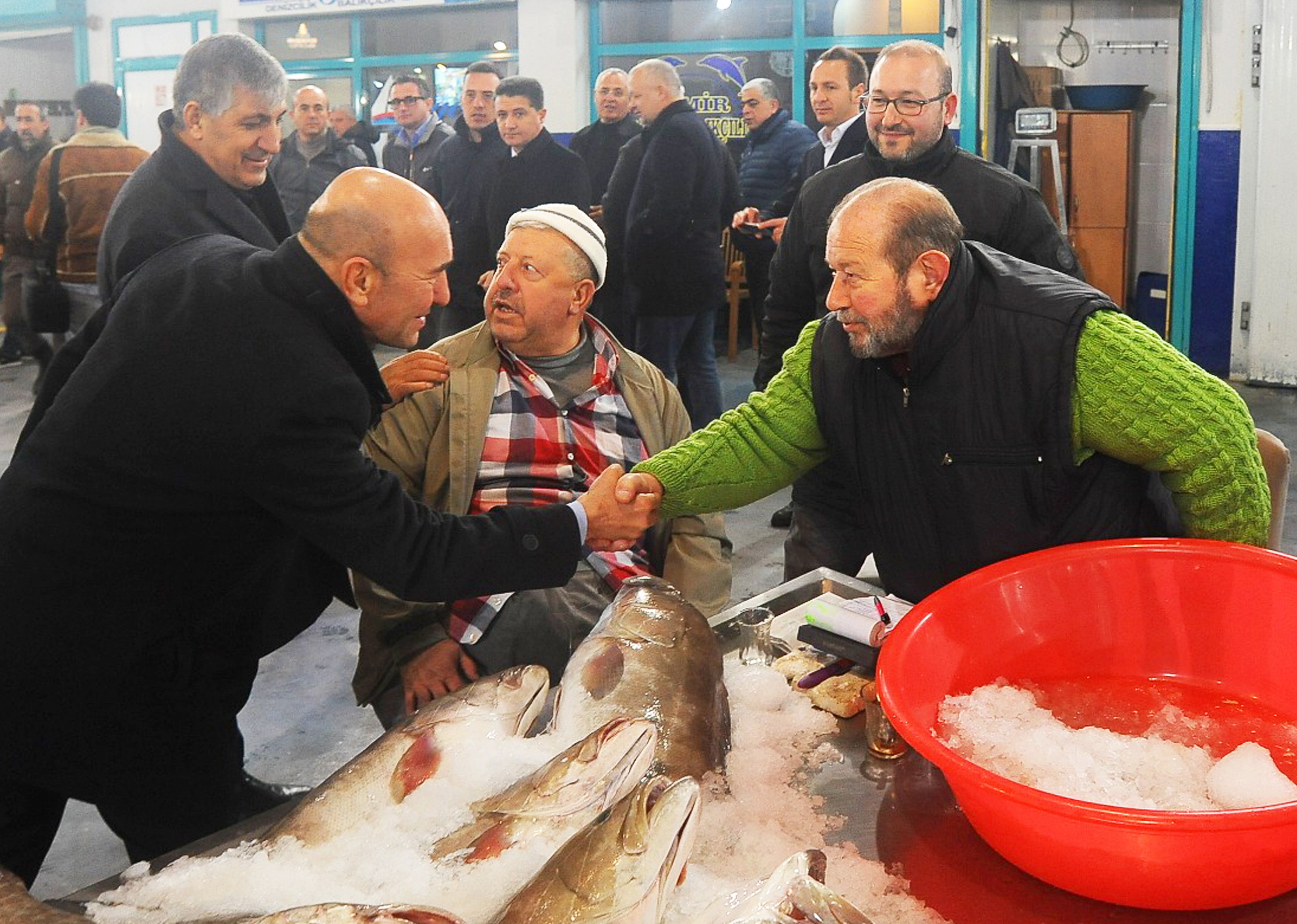 Soyer, İzmir Su Ürünleri Hali ile İzmir Sebze-Meyve Hali’ni ziyaret ederek