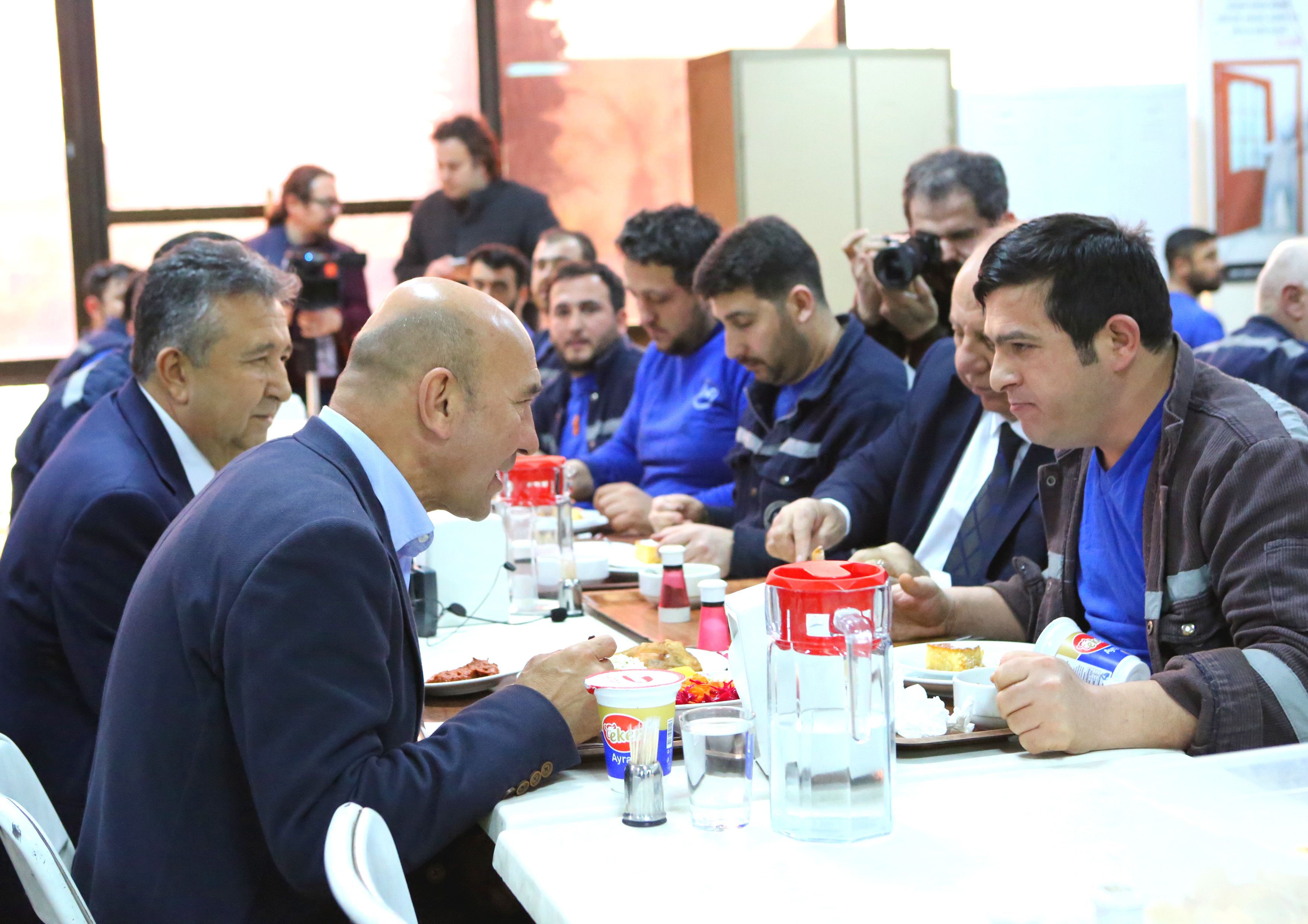 CHP İstanbul Milletvekili Sezgin Tanrıkulu, CHP İzmir Milletvekilleri Kamil Okyay Sındır ve Bedri Serter’in de eşlik ettiği buluşmanın ardından Soyer, İzmir Demir Çelik Fabrikası’nın (İDÇ) emekçileriyle beraber yemek yedi, sohbet etti. ‘Belediyecilik, sadece yol, kaldırım ve çöp meselesi değildir. Elbette bunları yapacağız fakat Belediyecilik İzmir gibi bir şehirde asla yalnızca bunlardan ibaret olamaz. İzmir gibi bir şehirde refahı büyütemiyorsan belediyebaşkanı olmamalısın’ diyen Soyer, İzmir’in ürettiği refahı birlikte büyüteceklerini ve belediye başkanı olarak bu refahın eşit olarak paylaştırılmasını sağlayacağını belirtti:“Demokrasi bu yüzden önemli. Demokrasi en çok alın teri dökenlerin, emekçinin, işçinin ekmeğini büyütür.”