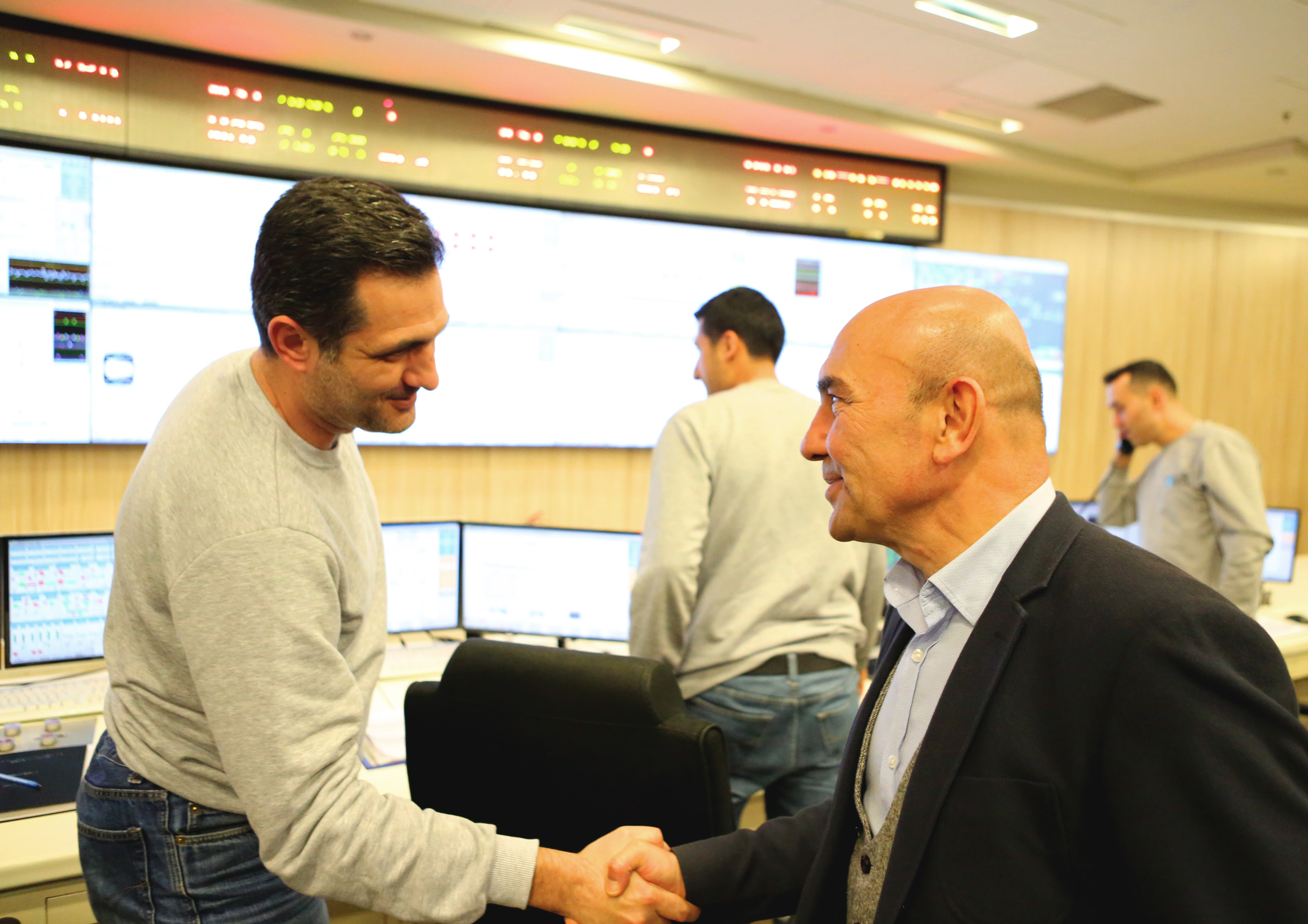 Üretim alanını ve çelikhaneyi dolaşan Tunç Soyer, İDÇ Enerji A.Ş. ve Nemrut Körfezi’ndeki İDÇ Liman İşletmeleri tesisini de gezdi.