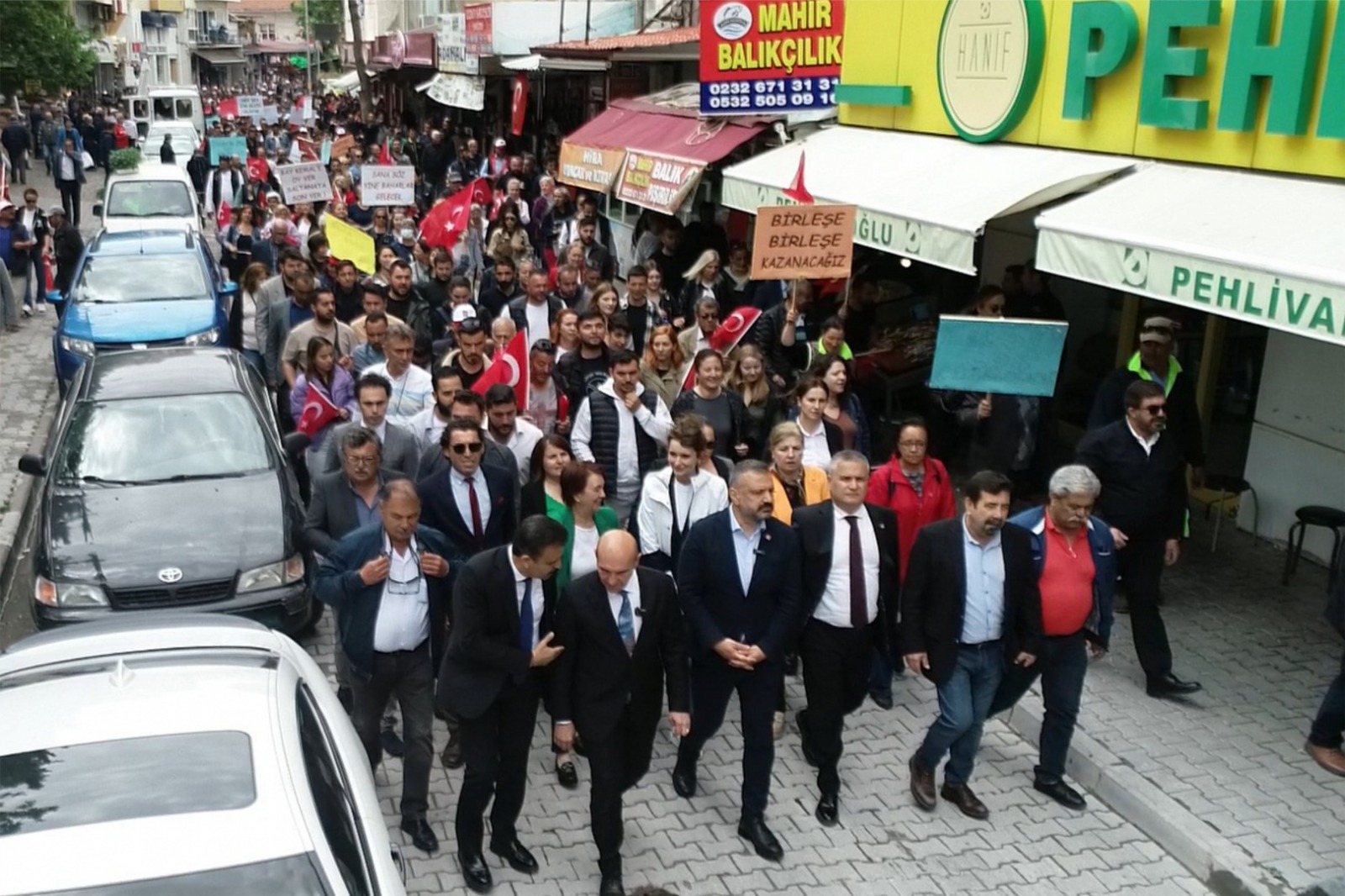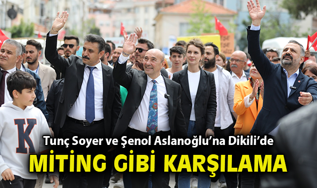 Seçim sürecinin değerlendirildiği toplantı sonrasında her iki başkan Dikili Atatürk Meydanı’nda genci yaşlısı çok sayıda vatandaş tarafından coşkuyla karşılandı. Miting havasında geçen buluşma sonrasında İzmir Büyükşehir Belediye Başkanı Tunç Soyer, CHP İzmir İl Başkanı Şenol Aslanoğlu, Dikili Belediye Başkanı Adil Kırgöz, CHP Dikili İlçe Başkanı Emre Kırlı, ilçe örgütü ve binlerce vatandaş “Halkın Umudu Kılıçdaroğlu”, “Hak, Hukuk, Adalet”, “Birleşe Birleşe Kazanacağız” sloganları eşliğinde Dikili sokaklarında yürüyerek esnafı ziyaret ettiler. Çevre ve apartmanlardaki vatandaşlar sokaklara sığmayan coşkulu kalabalığa destek verdiler.Dikili’deki vatandaşların coşkusundan oldukça memnun kalan Başkan Soyer: “Güne Dikili’de başlamak, sizlerle buluşmak, Dikili’nin sokaklarında apartmanlara, esnafa umut vermek, varlığımızı göstermek çok güzel. Bunun enerjisiyle biz epey gideriz. Dikili hep içimizi açtı, bize güç verdi. İzmirli olmakla, Dikilili olmakla gurur duyuyoruz” dedi.İzmir Büyükşehir Belediye Başkanı Tunç Soyer, CHP İl Başkanı Şenol Aslanoğlu, Dikili Belediye Başkanı Adil Kırgöz, bu seçimin 100 yılın seçimi olduğunu vurgulayarak Türkiye’nin birleştirici gücü Kemal Kılıçdaroğlu liderliğinde halkın iktidarının çok yaklaştığını o nedenle herkesin canla başla çalışması gerektiğini belirttiler.Dikili programı sonrasında Çandarlı’ya geçen başkanlar esnafı ziyaret ederek vatandaşlarla bir araya geldiler.