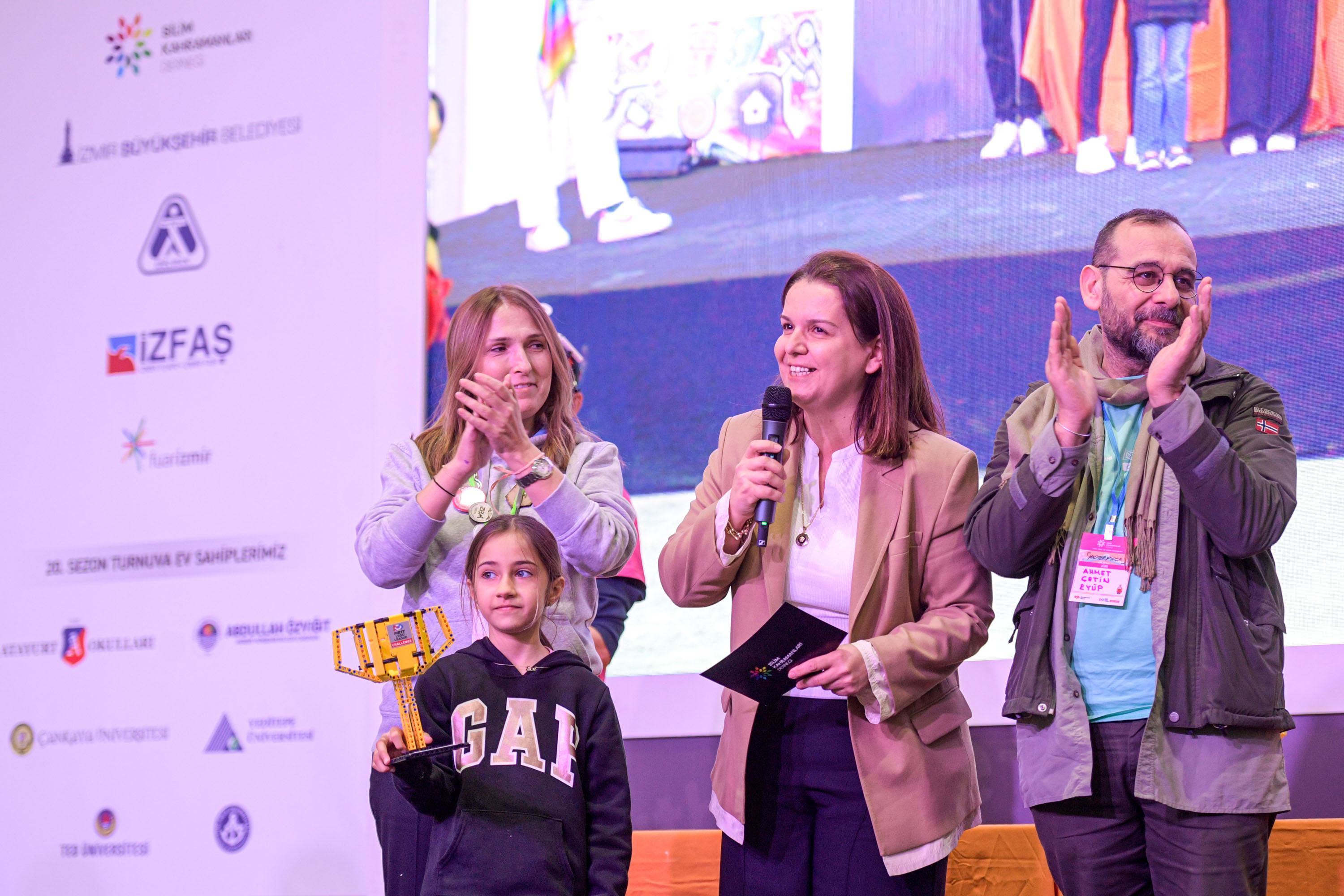 İZFAŞ Halkla İlişkiler ve Etkinlikler Müdürü Şebnem Şendil de “Uzun yıllardır bu turnuvaya ev sahipliği yapıyoruz. Sizi ağırlamaktan, bir arada ve coşkunuza ortak olmaktan büyük mutluluk duyuyoruz. Bugün burada sonuç ne olursa olsun hepiniz kazandınız, bu duyguyla ayrılmanızı istiyoruz. İyi ki varsınız. Her zaman bilimi desteklemeye ve yanınızda olmaya devam edeceğiz” diyerek bu yıl Dünya Robot Olimpiyatı (World Robot Olympiad-WRO) Uluslararası Finali’nin, 28-30 Kasım 2024 tarihleri arasında yine fuarizmir’de düzenleneceğini hatırlattı. İlk beşe giren ve uluslararası turnuvalara katılmaya hak kazanan takımlar ve okulların listesi şöyle oldu: Şampiyonluk Ödülü: Exfavilla in Scaena - İzmir TAKEV Ortaokulu İkincilik Ödülü: Intersectıon Lurenia - İstanbul Bahçeşehir Fen ve Teknoloji Lisesi Üçüncülük Ödülü: Artıfusion - İzmir Çakabey Lisesi Dördüncülük Ödülü: Robotürk - İzmir Büyükçiğli Türk Koleji Fen Lisesi Beşincilik Ödülü: Future Designers - Manisa Salihli Bahçeşehir Koleji Ortaokulu