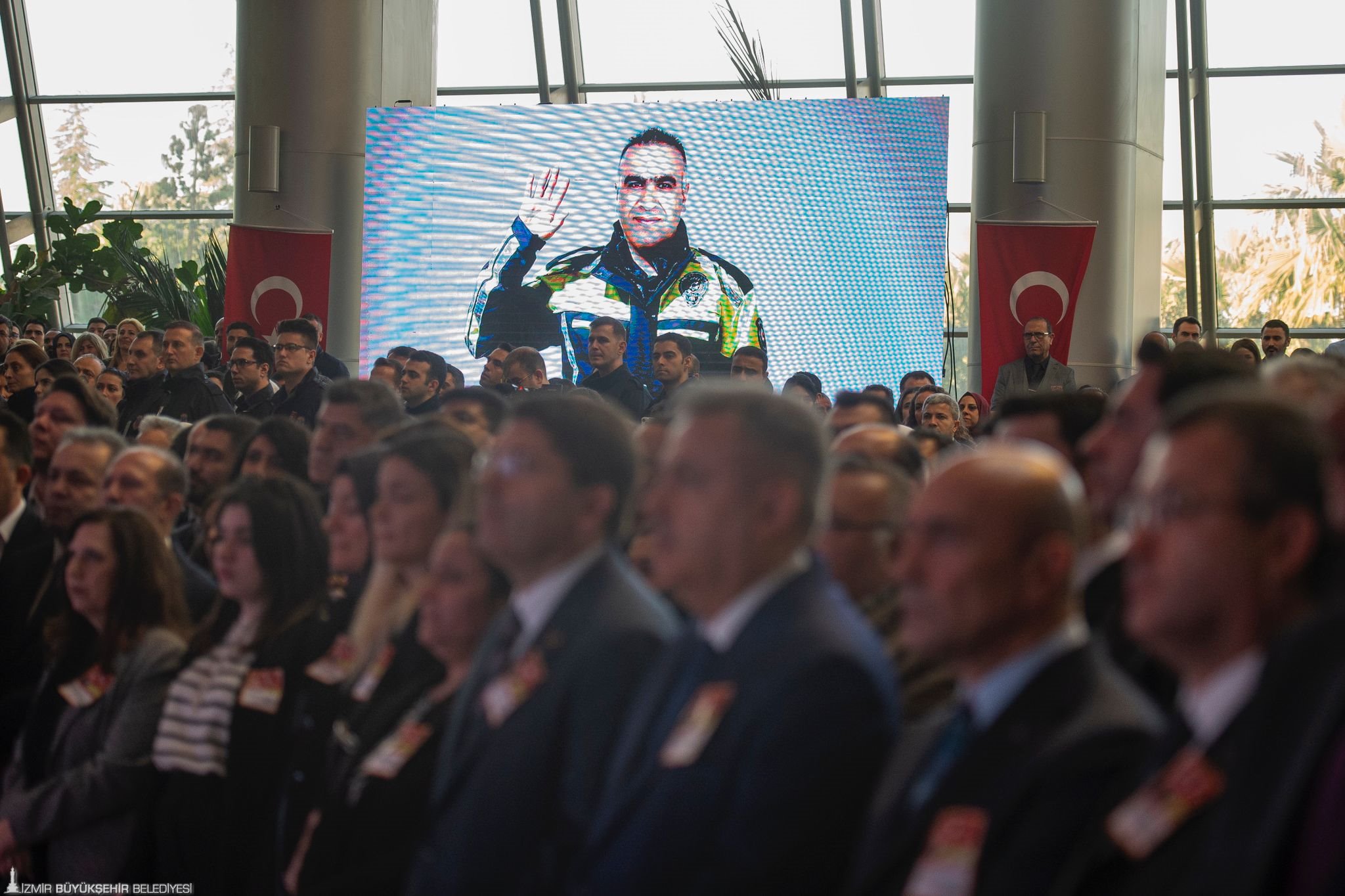 Bayraklı Adliyesi içinde düzenlen törene Adalet Bakanı Yılmaz Tunç, İzmir Cumhuriyet Başsavcısı Fahri Mutlu Tosun, İzmir Adli Yargı İlk Derece Mahkemesi Adalet Komisyonu Başkanı Oktay Tabur, İzmir İl Emniyet Müdürü Celal Sel, İzmir Valisi Süleyman Elban, Ege Ordusu Komutanı Orgeneral Kemal Yeni, İzmir Büyükşehir Belediye Başkanı Tunç Soyer, İzmir milletvekilleri, ilçe belediye başkanları, Şehit Fethi Sekin’in eşi Rabia Sekin ve kızı Dila Sekin, Musa Can’ın eşi Mecburiye Can ve kızı Emine Can, adliye personeli ve avukatlar katıldı.