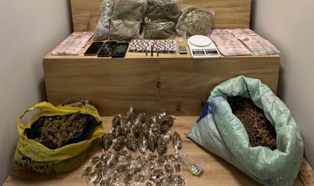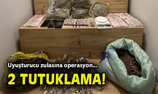 Konak İlçe Emniyet Müdürlüğü Suç Önleme ve Soruşturma Büro Amirliği ekipleri, ilçede bulunan bir evin uyuşturucu tacirlerinin zula olarak kullandığı ikamet olduğunu belirledi.Savcılık talimatıyla adrese gerçekleştirilen operasyonda, uyuşturucu nitelikli 187 sentetik ecza hapı, 18 ekstasy ve 10 kilo 500 gram esrar ile, uyuşturucu ticaretinden elde edildiği belirlenen 135 bin 730 Türk Lirası, 600 ABD Doları, 290 Euro nakit para ve 1 uzun namlulu silahlara ait fişek ele geçirildi.Olayla ilgili S.Ç. (44) ve M.B. (36) gözaltına alındı.