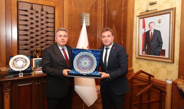 Başkan Demirezen, Vali Elban’a bir hediye plaketi sundu.