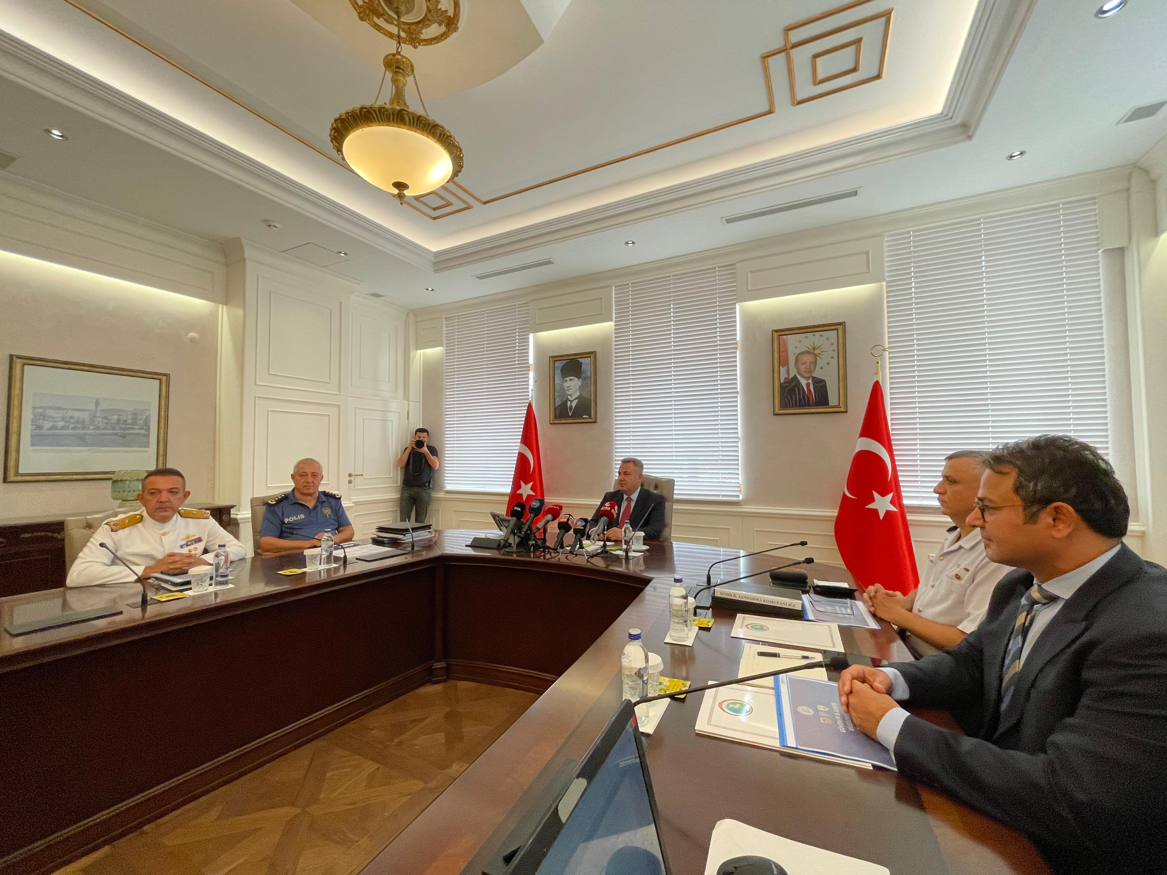 Çiğdem CANPOLAT / ÖNCÜŞEHİR – İzmir Valisi Dr. Süleyman Elban, kentte gerçekleştirilen güvenlik ve asayiş konularına ilişkin istatistikî verilerin paylaşıldığı bir basın toplantısı düzenledi.Toplantıya Vali Elban’ın yanı sıra; İzmir Emniyet Müdürü Celal Sel, İzmir İl Jandarma Komutanı Tuğgeneral Metin Düz, Sahil Güvenlik Ege Deniz Bölge Komutanı Tuğamiral Tayfun Paşaoğlu da eşlik etti.