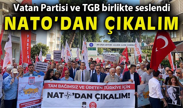 NATO’dan çıkan Türkiye’nin ekonomik anlamda önünün açılacağını söyleyen Cengiz, “Komşularımıza güven verelim, ucuz yakıta kavuşalım. NATO'nun mazotu, benzini, doğal gazı yok! Ama komşularımızın var. Çarşı-pazar ucuzlasın. Sanayicimiz, çiftçimiz rahat nefes alsın! Ekonomimiz şahlansın! Dolar saltanatına son verelim, Üretim Devrimi'ni başaralım. Gümrüklerimizi yeniden yükseltip, yerli üreticimizi koruyalım” dedi.‘NATO'NUN İÇİNDE KALARAK, TÜRKİYE'Yİ SAVUNMA OLANAĞI YOKTUR’Vatan Partisi İzmir İl Başkanı Çağdaş Cengiz, “ABD ve NATO, Türkiye'ye yönelen bütün tehditlerin kaynağıdır. AK Parti hükümeti, İsveç ve Finlandiya'nın NATO üyeliğinin yolunu açarak vahim bir yanlış yapmıştır. NATO'nun büyümesi, düşmanın büyümesidir. NATO'nun içinde kalarak, Türkiye'yi savunma olanağı yoktur. NATO bugün kaybeden taraftır. Doğu'ya genişleyen NATO, mezarına giden NATO'dur. Türkiye'yi NATO'ya zincirlemek en büyük kötülüktür. Türkiye'nin ABD ve NATO'dan korkmayan bir hükümete ihtiyacı var. Vatan Partisi'nin merkezinde yer alacağı Üreticilerin Millî Hükümeti, Türkiye'yi NATO'dan çıkaracak” AK Parti hükümetinin İsveç ve Finladiya’nın NATO üyeliği yolunu açmasını hatalı bir karar olarak değerlendirdi. ‘NATO’DA TÜRK GENÇLİĞİ YOK Z KUŞAĞI VAR’TGB adına açıklama yapan TGB Genel Sekreteri Berke Mustafa Berkil, “NATO’da, Pentagon’da, ABD Senatosu’nda, Amerikan düşünce merkezlerinde Türk gençliğine biçtikleri rol hükümeti devirip Türkiye’yi tekrardan Atlantik prangalarına vurmak. O görevleri reddediyoruz. NATO’da Türk gençliği yok Z kuşağı var. Türkiye’ye, Türk gençliğine eşcinselliği dayatan, yabancılaşmayı dayatan, çürümeyi dayatan NATO’dur. NATO’nun 2022 Stratejik Konsept belgesini açın bakın şunu görürsünüz: Değerlerimizin bir yansıması olarak toplumsal cinsiyet eşitliğini ilerletmeye devam edeceğiz. İşte bu yüzden NATO’da çıkalım geleceğimizi koruyalım diyoruz. Milli kültürümüzün, milli değerlerimizin düşmanı NATO’dur” diyerek NATO’nun Türk gençliğine biçtiği görevleri reddettiğini söyledi.
