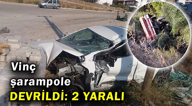 Vinç şarampole devrildi: 2 yaralı