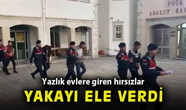 İzmir'in önemli turizm merkezlerinden Foça'da yazlıkçılar, sezonun bitmesiyle evlerine geri dönüş yapmaya başladı. Boş kalan evleri belirleyen hırsızlar, durumu fırsat bildi ve evlere hırsızlığa dadandı. Son olarak Yenifoça Burunucu mevkiinde, iki ayrı evden hırsızlık ihbarı alındı. Foça İlçe Jandarma Komutanlığı ekipleri, hemen harekete geçerek hırsızların peşine düştü. Ekipler, olayda kullanılan kamyonetle hırsızlık şüphelilerini çaldıkları eşyalarla yakaladı. H.B (23), M.A (21), S.V (31) ve İ.V (32) isimli 4 şüpheli gözaltına alındıktan sonra, işlemlerin ardından tutuklandı.