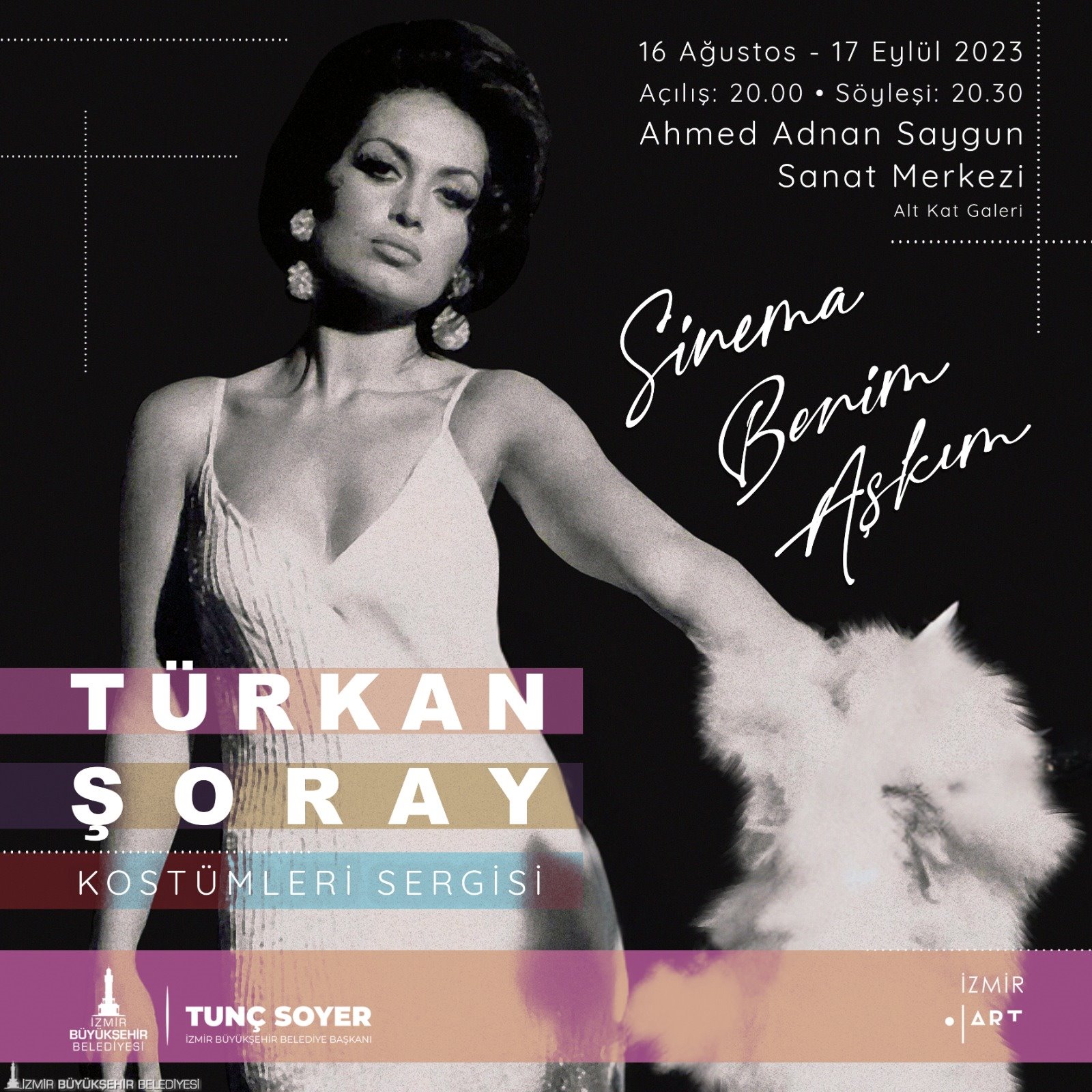 İzmir Büyükşehir Belediyesi Yeşilçam'ın Sultanı olarak adlandırılan Türkan Şoray'ın filmlerinde kullandığı kostüm ve film afişlerinin de aralarında bulunduğu sergiyi meraklılarının beğenisine sunuyor. 16 Ağustos Çarşamba saat 20.00’de Ahmed Adnan Saygun Sanat Merkezi’nde yapılacak "Sinema Benim Aşkım Türkan Şoray Kostümleri” sergisinin açılışına Türkan Şoray da katılarak hayranlarıyla buluşacak. Açılışın ardından 20.30’da gazeteci, yazar Bircan Usallı Silan moderatörlüğünde Türkan Şoray’ın “Sinema Benim Aşkım” adlı söyleşisi var.