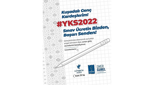 Kuşadası Belediye Başkanı Ömer Günel, eğitimin önündeki engelleri kaldırmak için çalıştıklarına dikkat çekerek “Kuşadalı Genç Kardeşlerim, YKS 2022 sınav ücretlerinizi biz karşılıyoruz. Geleceğimizin teminatı siz gençlere ekonomik zorluklar engel olmasın diye, eğitime destek bizden, başarı sizden” dedi.