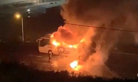 Yolcu otobüsü alev alev yandı
