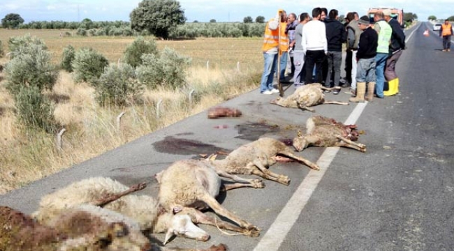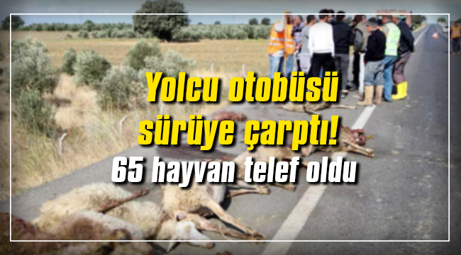 Akın,bir yolcu firmasın ait yolcu otobüsünün sürüsüne çarpmasıyla 65 hayvan