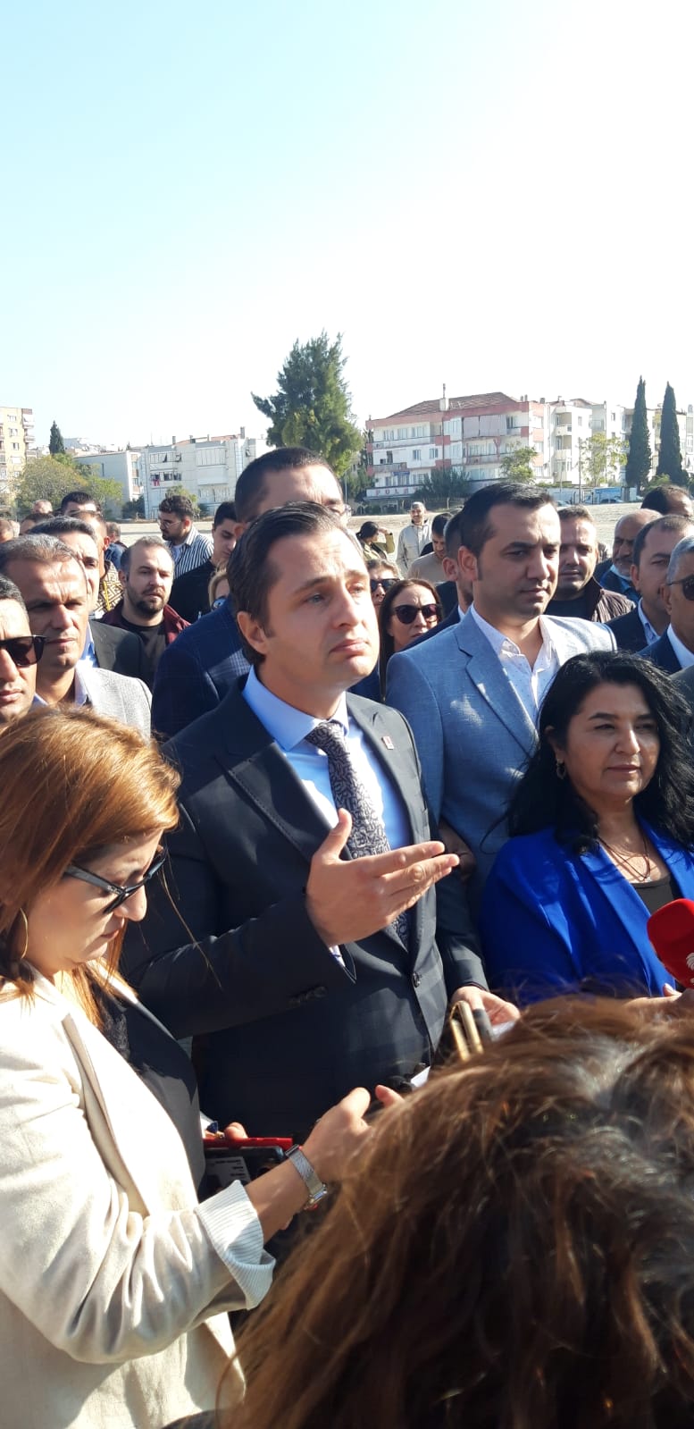 Öte yandan kentin birçok bileşen, alanda açıklamalarda bulunarak yeşil alan çağrısı yaptı. Bugün ise CHP Partisi İzmir İl Başkanı Deniz Yücel, İl Yönetim Kurulu ile birlikte alanında bir basın açıklaması gerçekleştirdi.