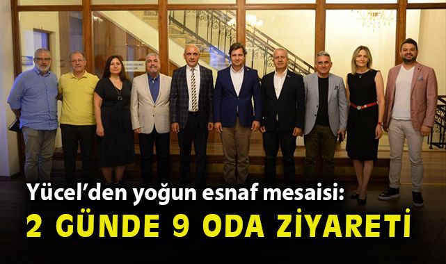 CHP İzmir İl Başkanı Yücel iki günlük program kapsamında gerçekleştirdiği ziyaretlerde, Bakkallar ve Bayiler Odası Başkanı Emin Yağcı, Berberler Esnaf ve Sanatkarlar Odası Başkanı Şükrü Bilgin, Emlak Komisyoncuları Odası Başkanı Mesut Güleroğlu, Kahveciler Esnaf Odası Başkanı İsmail Hakkı Kırdı, Serbest Muhasebeciler ve Mali Müşavirler Odası Başkanı Ertuğrul Davutoğlu, Pazarcılar Odası Başkanı Hamdin Erişen, Fırıncılar Odası Başkanı Kemal Sırtı, Çiçekçiler Esnaf Odası Başkanı Kazım Kış ve Lokantacılar ve Gazinocular Esnaf Odası Başkanı Doğan Kılıç ile bir araya geldi. Yücel’e tüm ziyaretler boyunca CHP İzmir Esnaf, Esnaf Odaları ve Ekonomi Politikalarından Sorumlu Başkan Yardımcısı İrfan Yelis’ de eşlik etti