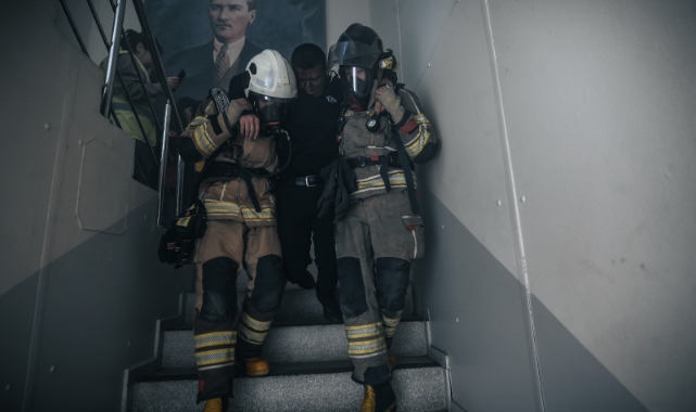 İzmir Büyükşehir Belediyesi, olası bir depreme hazırlık çalışmalarını güçlendirmek amacıyla tatbikat gerçekleştirdi. Afet İşleri Dairesi Başkanlığı, İtfaiye Dairesi Başkanlığı ve Eşrefpaşa Hastanesi’nin koordinasyonuyla Zabıta Dairesi Başkanlığı yerleşkesinde düzenlenen tatbikat, gerçek bir afet anını aratmayan görüntülere sahne oldu. Senaryo gereği, İzmir merkezli büyük bir deprem meydana geldi ve Zabıta Dairesi Başkanlığına ait binada çökmeler oluştu. Aynı anda binanın sistem odasında yangın çıktı. Deprem sırasında binada bulunan bazı personel yaralanarak bulundukları yerde mahsur kaldı. İhbar üzerine kısa sürede olay yerine ulaşan İzmir İtfaiyesi ekipleri, binada mahsur kalan çalışanları titiz bir çalışmayla kurtararak güvenli bölgelere taşıdı. Ekipler, eş zamanlı olarak yangına müdahale ederek alevleri kısa sürede kontrol altına aldı. Güvenli alana çıkarılan yaralılara, olay yerinde bekleyen Eşrefpaşa Hastanesi sağlık ekipleri tarafından ilk müdahale yapıldı. Yaralılar durumlarına göre değerlendirdikten sonra ambulanslarla hastaneye sevk etti.
