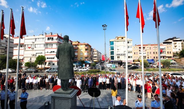 GURUR VE COŞKUYLABayraklı Belediye Başkanı Serdar Sandal, “Büyük zaferin 100’üncü yılı tüm ulusumuza kutlu olsun. Başkomutan Gazi Mustafa Kemal Atatürk ve kahraman şehitlerimizi rahmet, minnet ve şükranla anıyorum. Her aşaması vatanseverlik ve kahramanlık destanlarıyla dolu 30 Ağustos Zaferi’nin 100’üncü yıl dönümünü milletçe birlik ve beraberlik içinde; büyük bir gurur ve coşkuyla kutluyoruz” dedi.