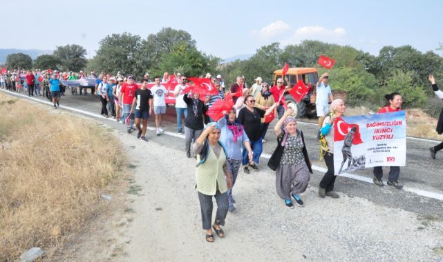 İzmir’in kurtuluşunun 100’üncü yılı nedeniyle İzmir Büyükşehir Belediyesi tarafından düzenlenen Zafer Yolu yürüyüşü devam ediyor. Afyon ve Kütahya etabını tamamlayan Zafer Yolu kafilesi Uşak etabının son noktası Eşme’nin Takmak köyüne ulaştı.